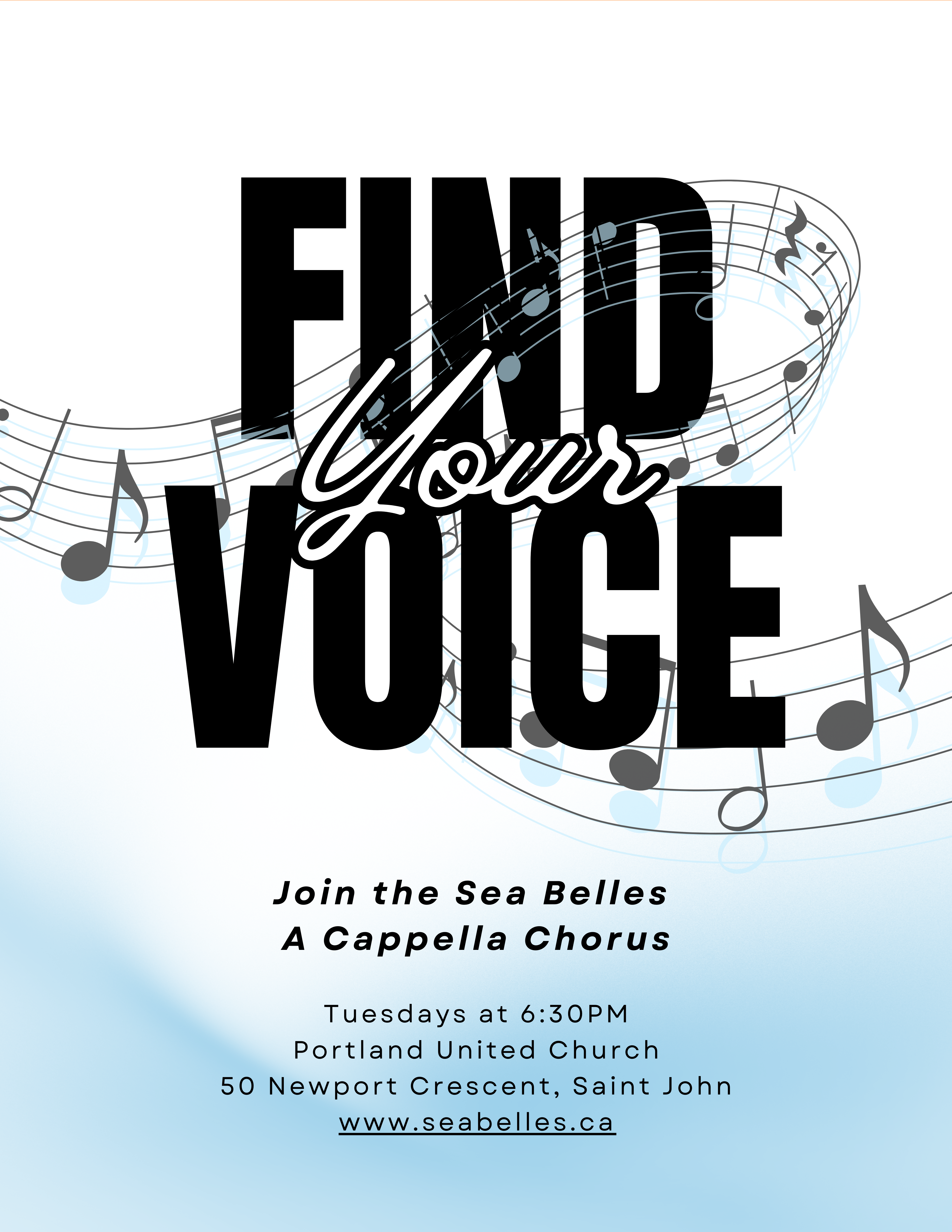 Rehearsal Schedule: We rehearse every Tuesday evening from 6:30 - 9:00 p.m. at Portland United Church, 50 Newport Crescent, in Saint John. Our rehearsals are where we perfect our craft.